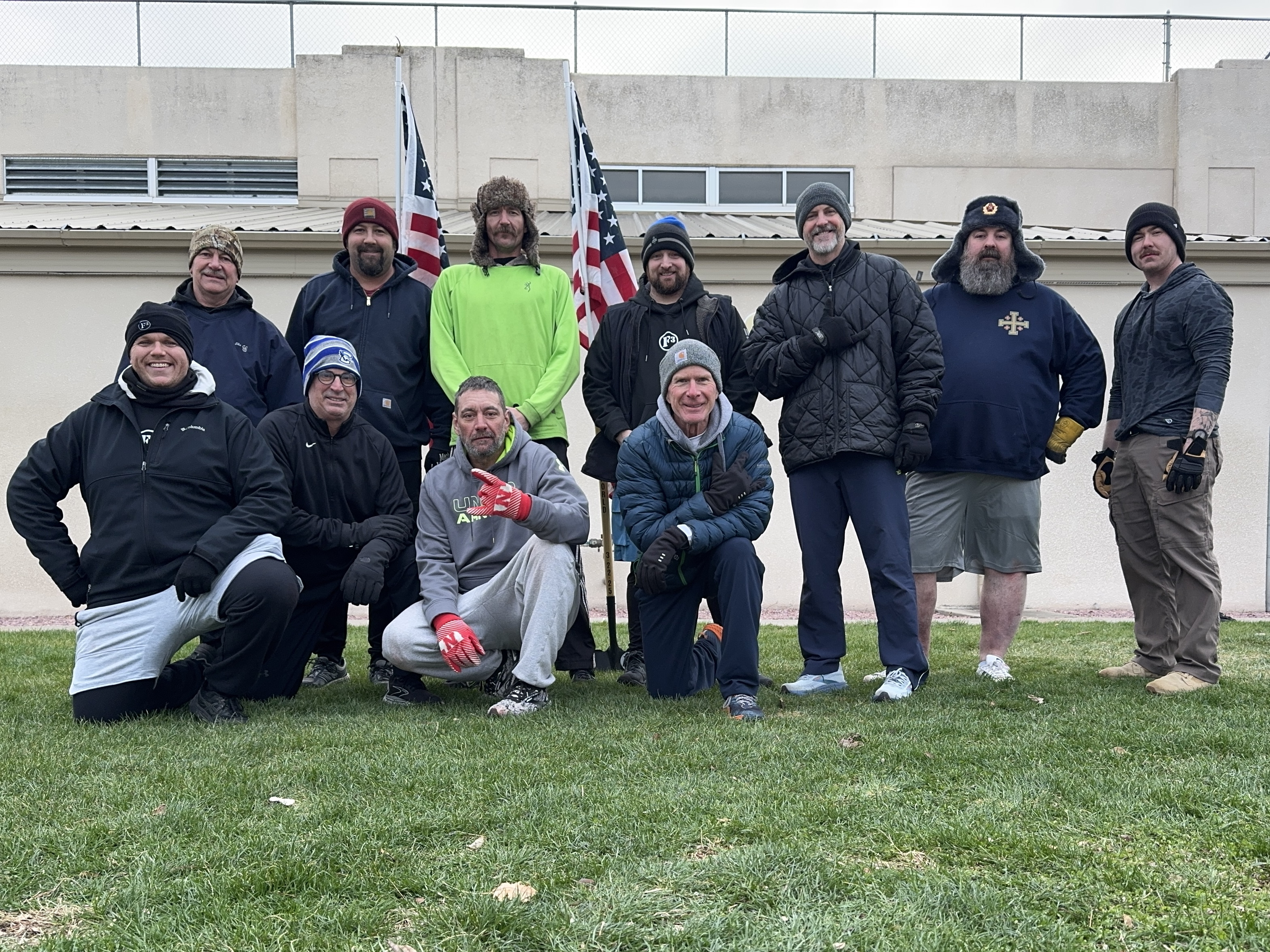 A crisp 34 degrees with a steady wind—just enough to wake the body, not enough to slow the mission. The men of F3 Platte gathered once again under the banner of **Fitness, Fellowship, and Faith**.